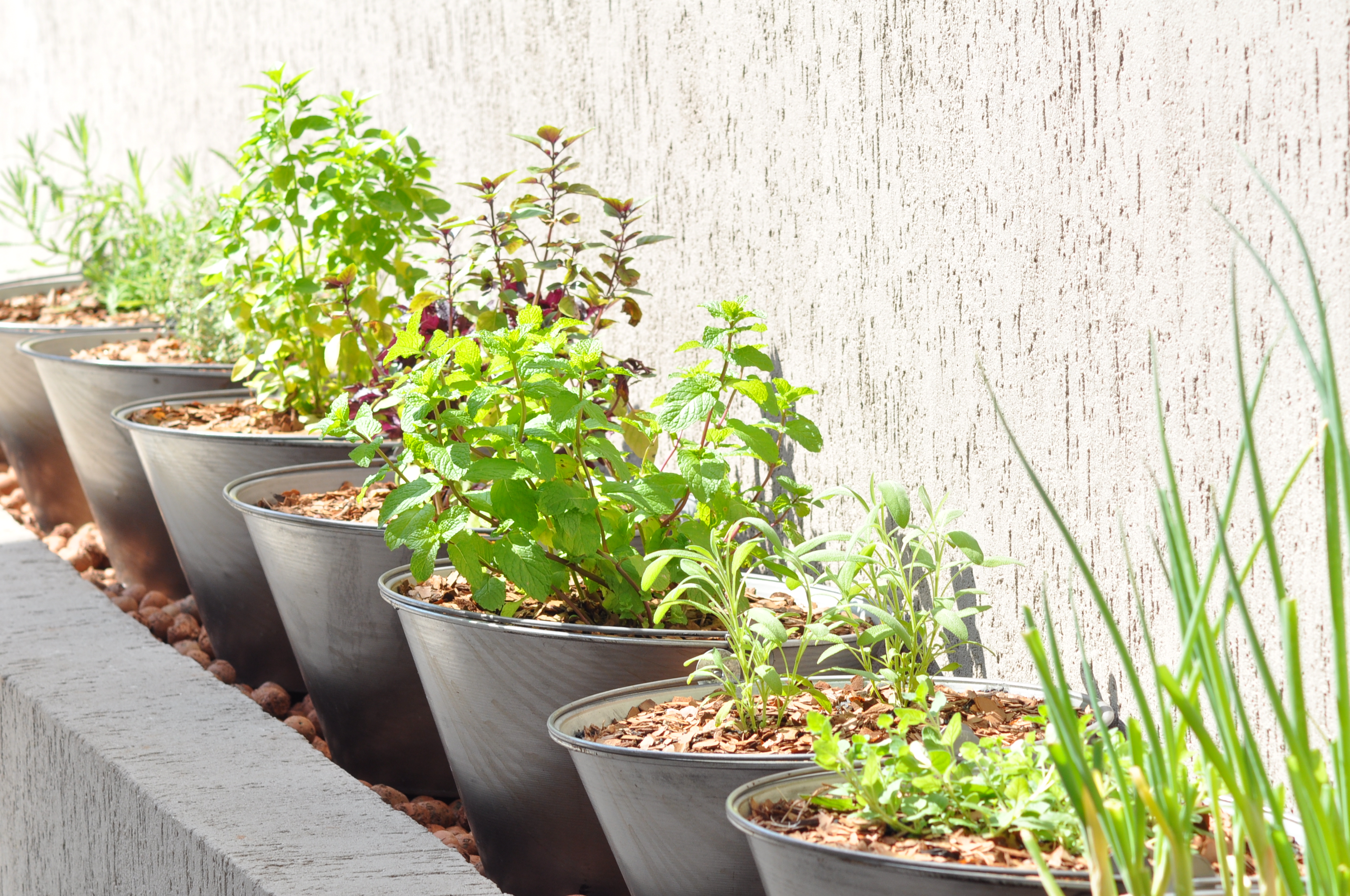 Tirei as medidas necessárias e então fui até uma loja de ferragens. Comprei 10 baldes de pedreiro (o vendedor deve ter ficado imaginando o que eu iria fazer com 10 baldes de misturar massa). Então fui até uma loja de plantas e pedi para que fizessem furos nos fundos dos baldes e plantassem mudas de ervas aromáticas neles. O atendente ficou me olhando com estranhamento e perguntou se eu tinha certeza do que queria fazer, ficou com pena de furar os baldes, mas fez o que eu pedi. Resultado: voltei depois de 4 dias e o vendedor de plantas me disse que tinha ficado ótimo e que já havia duas clientes querendo comprar meus baldes com ervas.