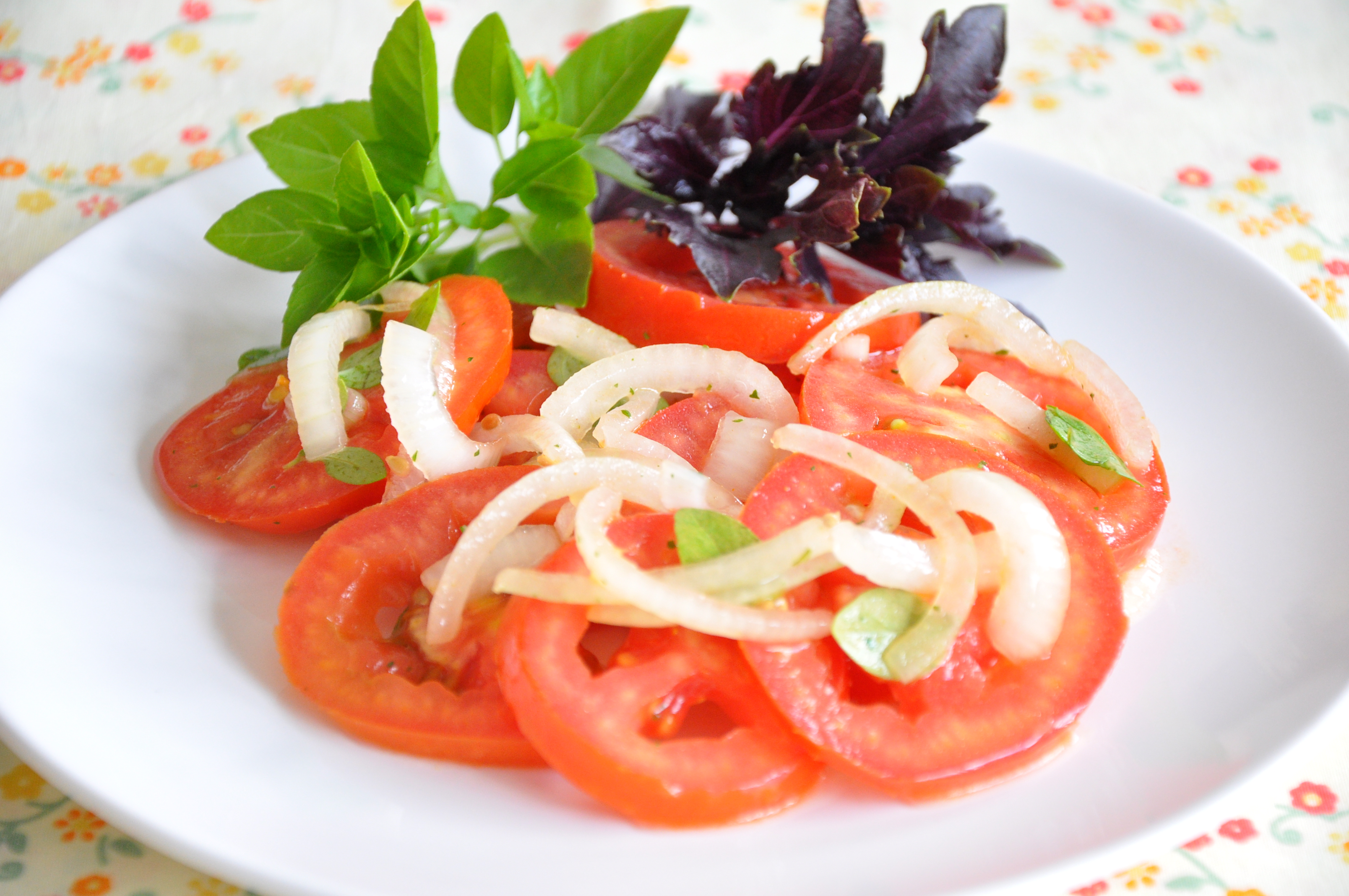 Primeiro faça a misturinha e deixe pronta. Descasque as cebolas e corte em rodelas como de costume, coloque na água gelada para suavizar a ardência e enquanto isso corte os tomates em rodelas. Então escorra a cebola e junte aos tomates. Tempere com o vinho, o vinagre, o azeite, o sal e a mistura de temperos secos. Misture bem e prove para ver se precisa de sal.