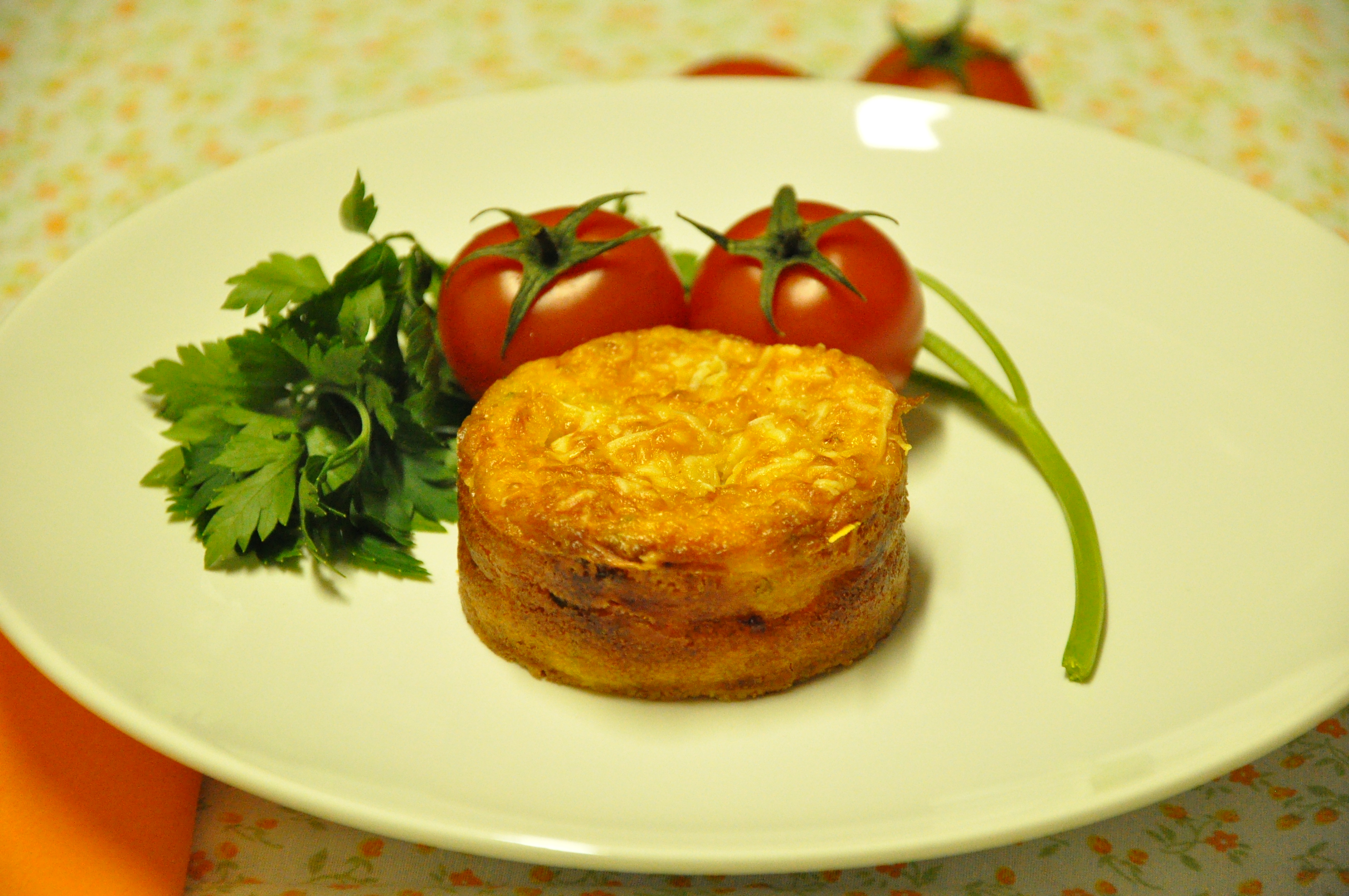 Se preferir, pode fazer em forminhas pequenas, como na foto ao lado, para ter porções individuais e servir de entrada. Ao servir decore com tomatinhos e ervas para dar um charme especial. Pode ser degustado quente ou frio se preferir.