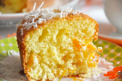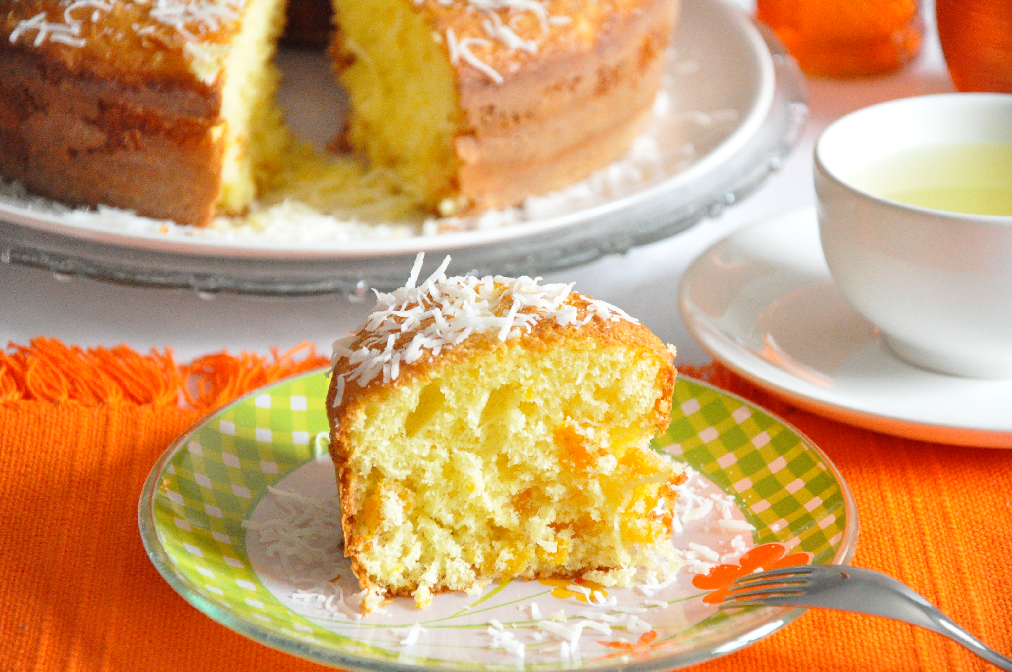 Umedeça o bolo com o restante do suco de laranja e finalize com o coco que foi reservado para decorar o bolo. Hummmm! Delícia com um cafezinho, chá ou suco no final da tarde! E não se esqueça de ser um pouco “gourmet”, mesmo que seja só um bolinho com suco, vale a pena arrumar a mesa com capricho!