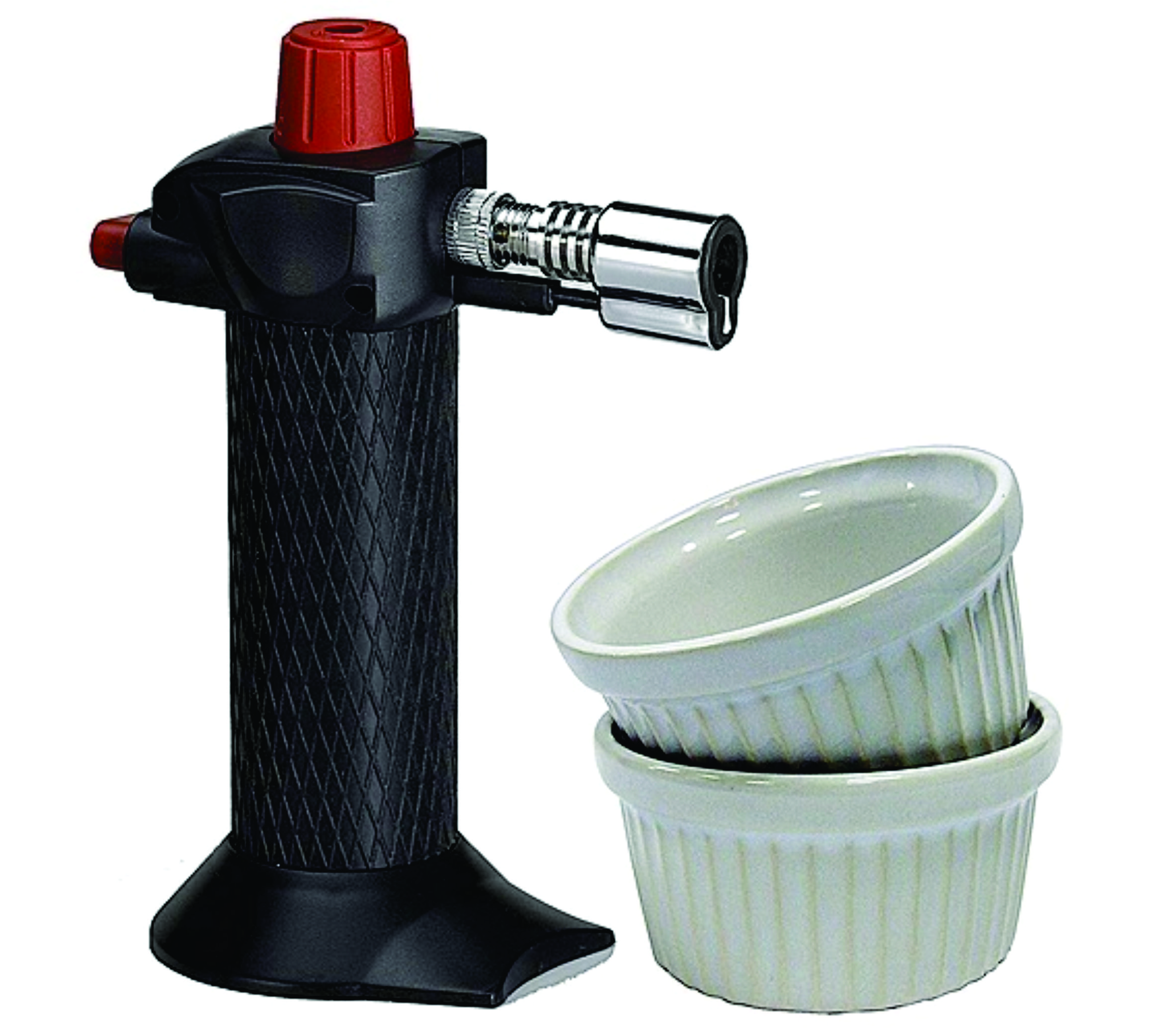 O maçarico culinário é um utensílio portátil que eu considero super legal e não é muito caro (de R$100 a R$150). Esse que eu comprei é bem pequeno e pode ser manipulado com apenas uma das mãos, é facilmente abastecido com gás butano que geralmente é utilizado para abastecer isqueiros de luxo.