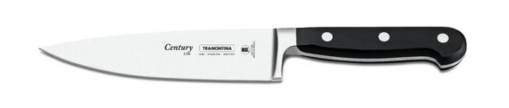 A faca ideal tem uma “barriguinha” próxima ao cabo, onde podemos apoiar os dedos e ter mais firmeza e segurança para cortar, pois você consegue segurar a lâmina e o cabo ao mesmo tempo. Uma faca de aproximadamente 35 cm de comprimento é multiuso, serve para cortar vários tipos de alimentos e daí você pode ter apenas uma.