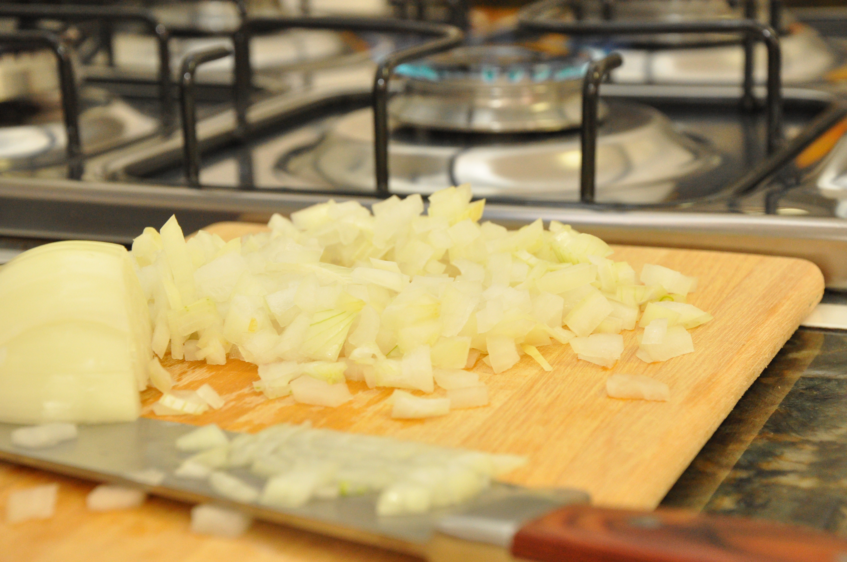 Então testei mais uma dica que vi num livro de gastronomia e sabe que funcionou! É o seguinte: sempre que for cortar cebolas, posicione a tábua bem perto do fogão e deixe uma chama acesa, enquanto você corta a cebola a chama queima os gases liberados e evita que eles se espalhem e façam arder os olhos. Comigo funcionou, testa aí!