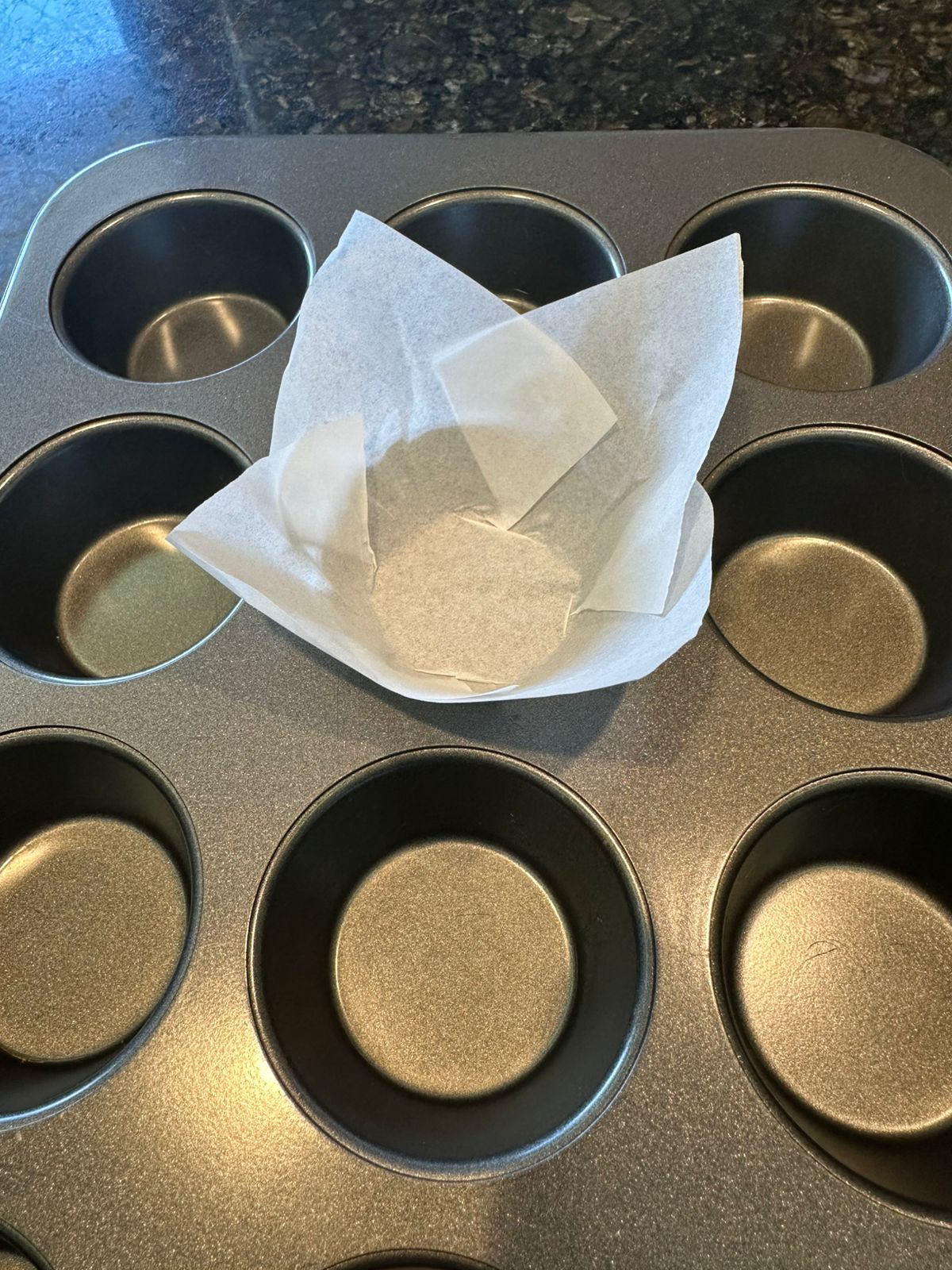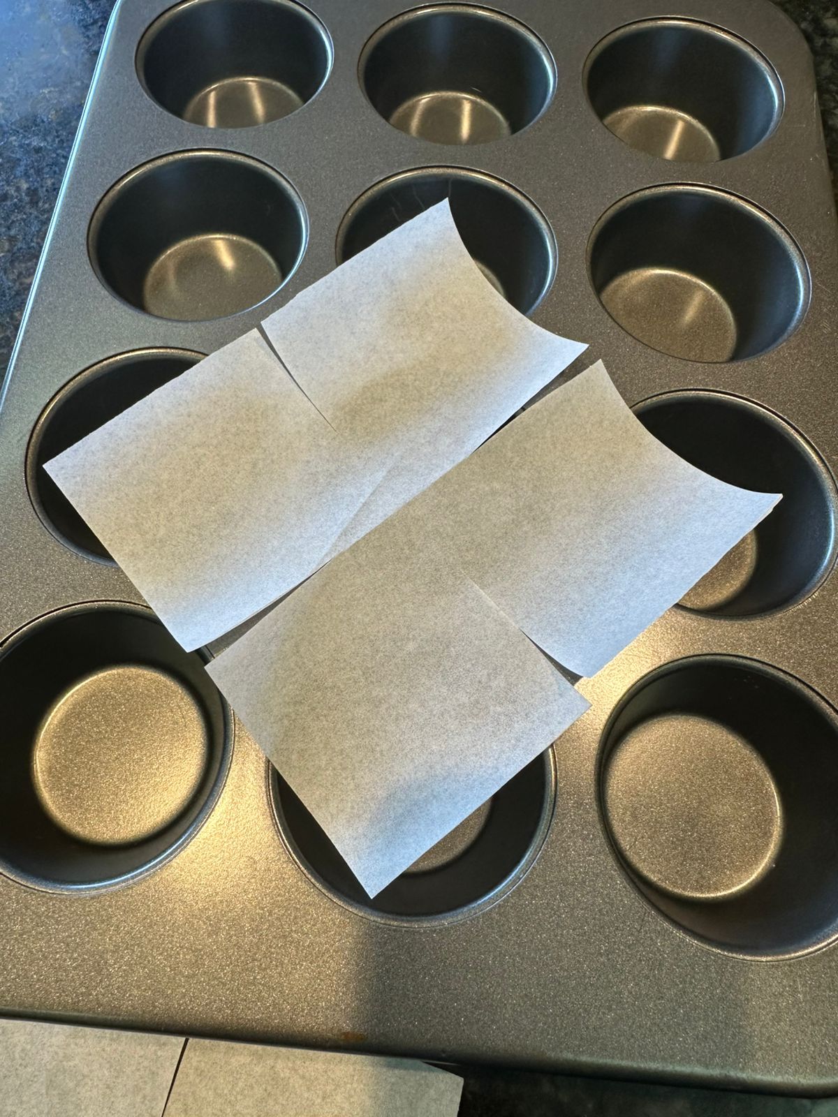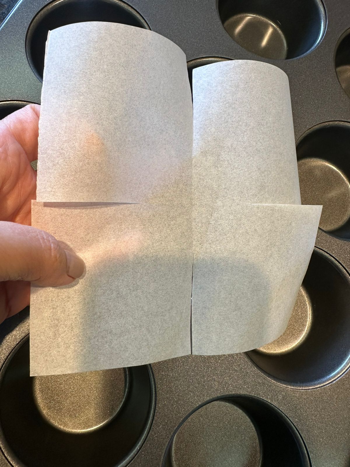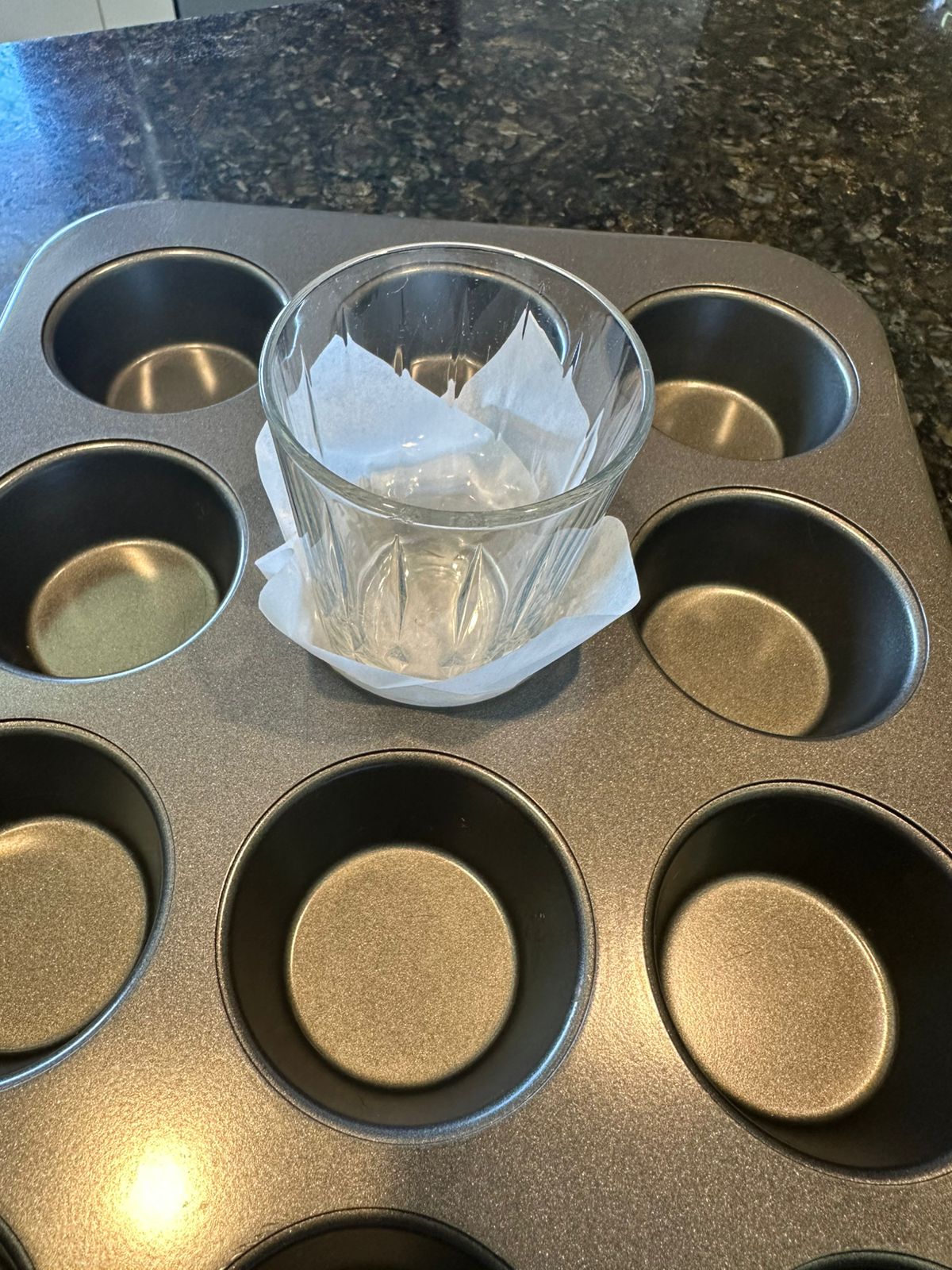 Caso não tenha as forminhas em casa, segue um jeitinho que eu usei de acomodar os muffins com papel manteiga e deixar bem charmoso.