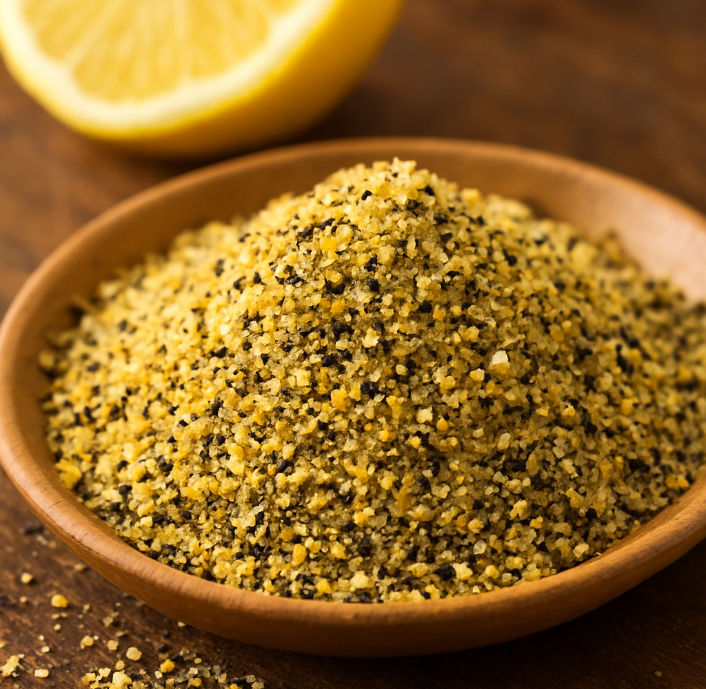 Lemon pepper é uma mistura de especiarias muito aromática feita, essencialmente, com raspas de limão (ou óleo de limão) e pimenta preta moída, podendo incluir também sal, alho em pó, cebola em pó, e outras ervas secas como tomilho ou manjericão.
