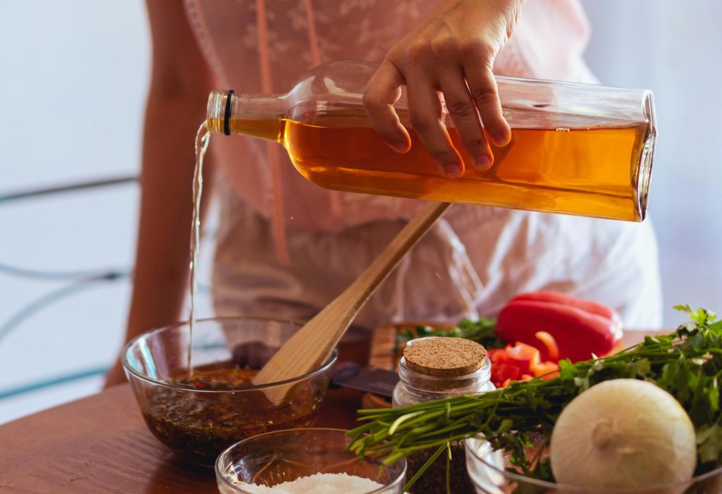 Tem aroma frutado, mais leve e menos ácido. É ideal para molhos de saladas leves, marinadas de frango e peixe, conservas de frutas e sucos funcionais.