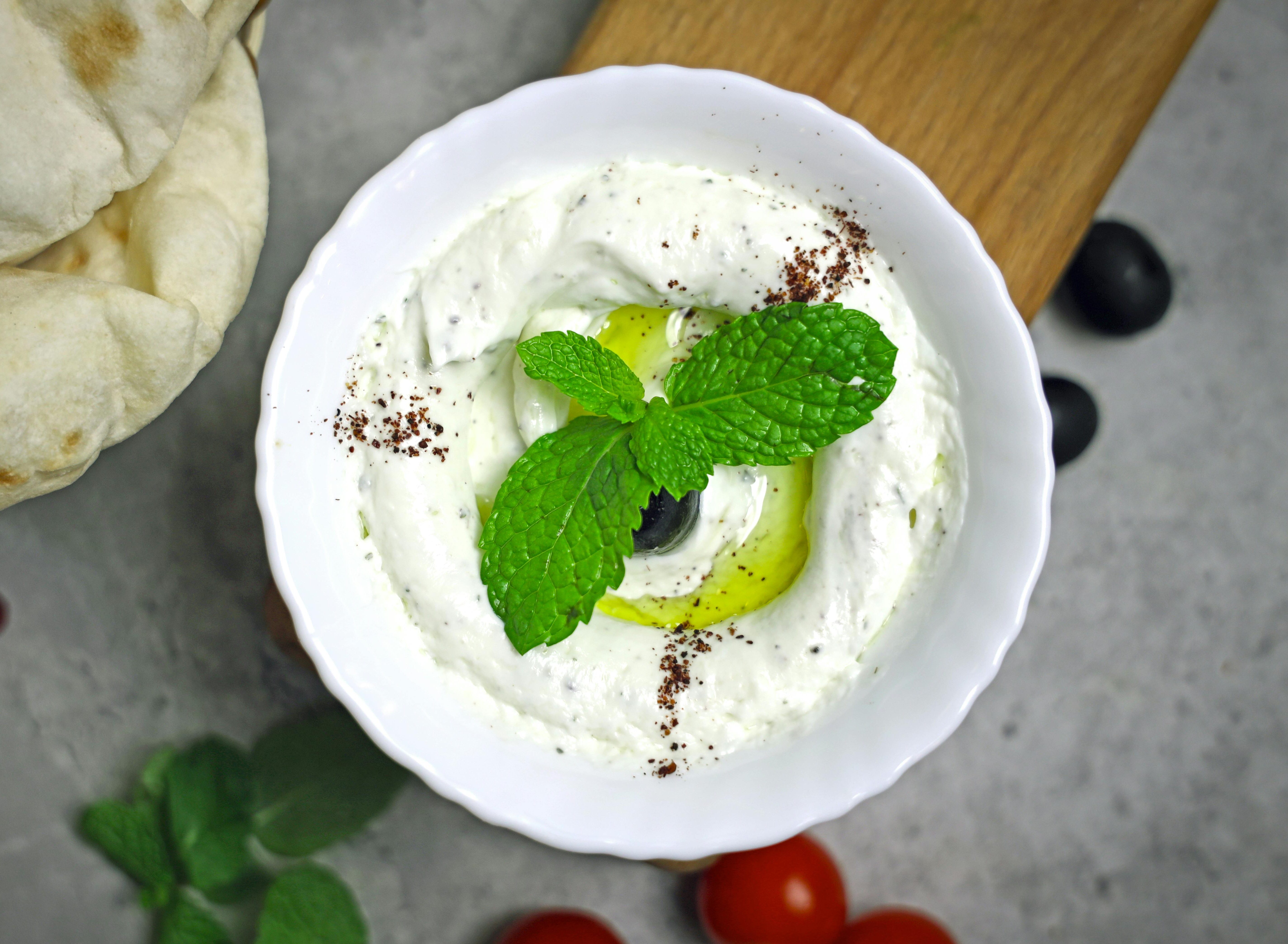 O tempero mais comum é azeite sal e zaatar, mas você é livre para temperar com o que quiser. Mantenha a coalhada armazenada pura e tempere somente a porção que vai comer na hora. Assim ela dura vários dias na geladeira.